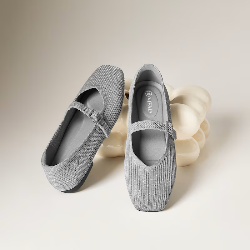 VIVAIA Sepatu Wanita Square-Toe Mary-Jane (Margot Mary-Jane) - Grey Silver