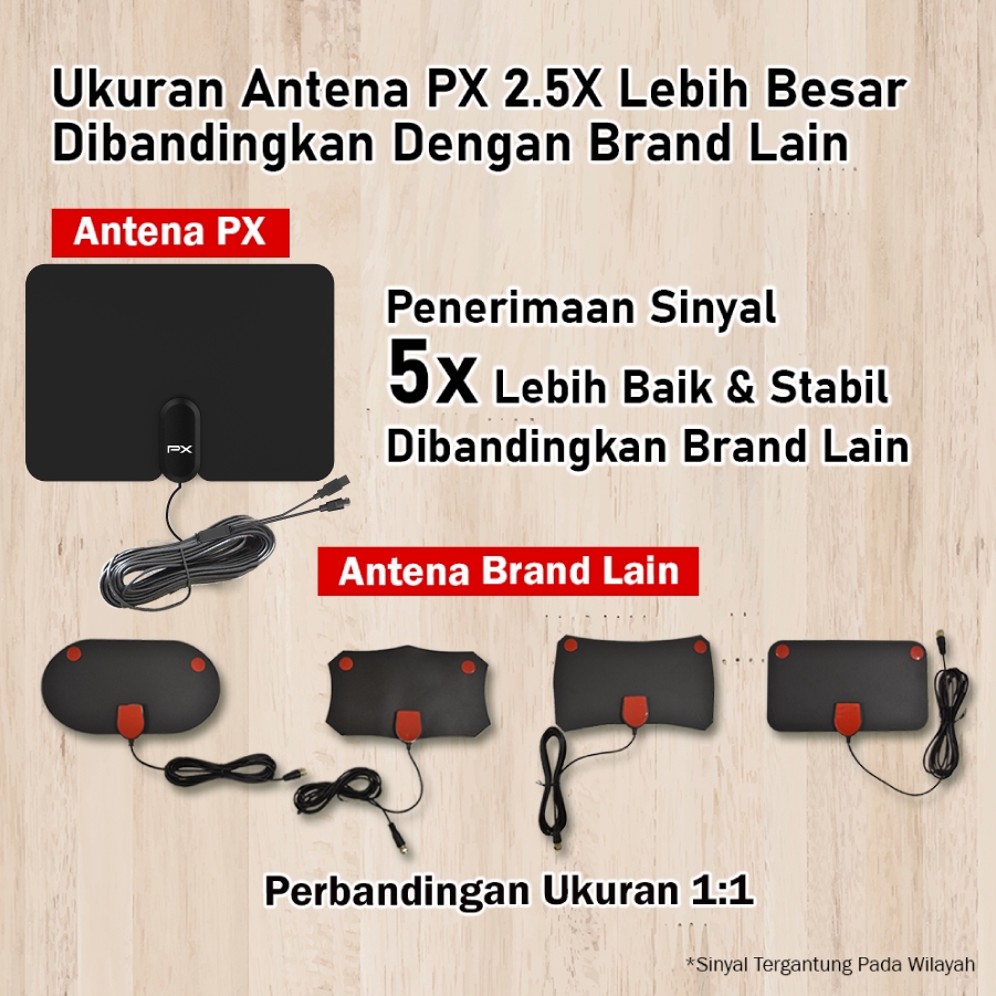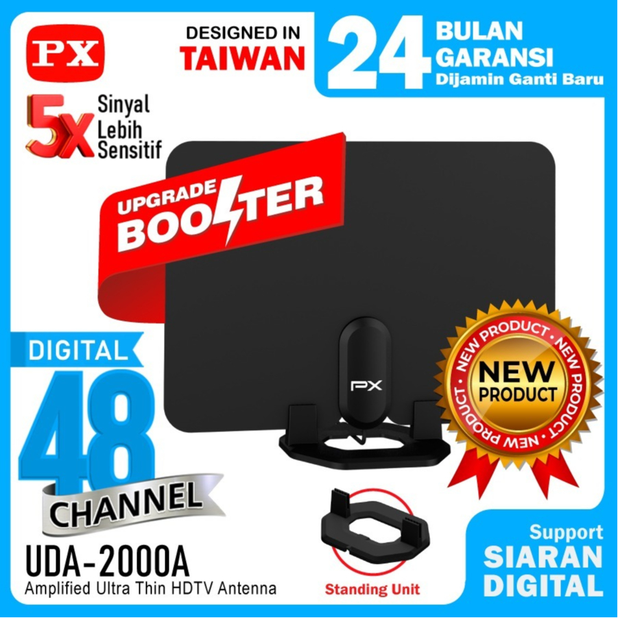 Antena TV Digital Analog Indoor Dinding DVBT2 + Booster Antenna PX UDA-2000A