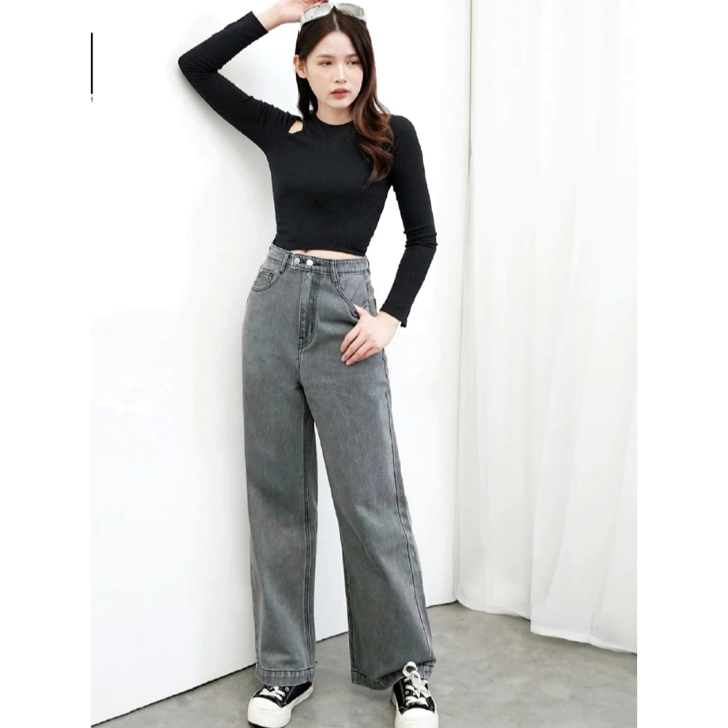 Celana Jeans Loose Highwaist Gombrong Kulot Sekena Wide Leg Baggy Pants Unisex Weshed Denim Wanita