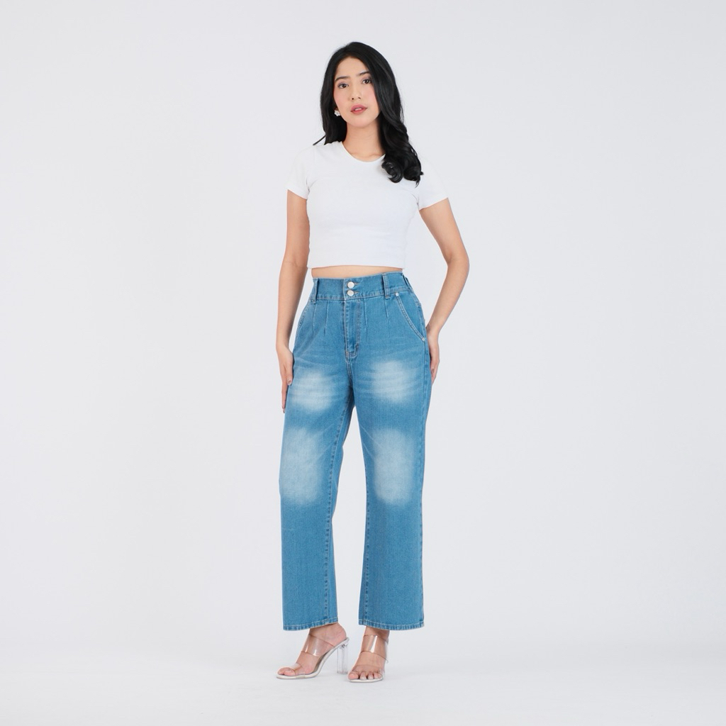 JISOO Kulot Celana Panjang Sedang Ukuran Standar- Jumbo Loose Jeans Wanita