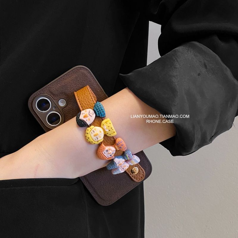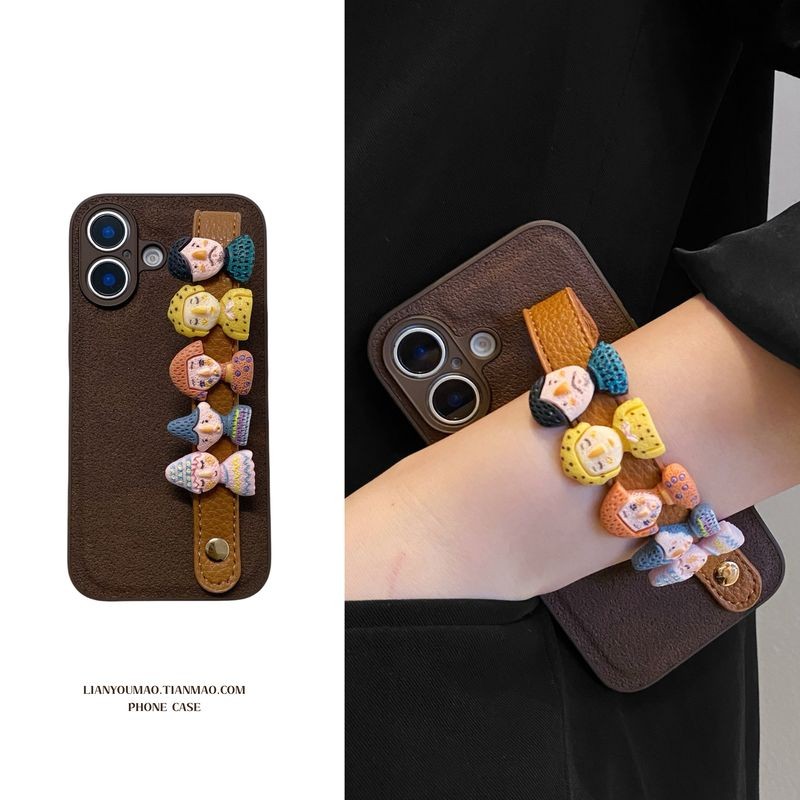 Fun brown three-dimensional doll leather strap for iPhone 16 15 14 13 12 11 17 Pro max case