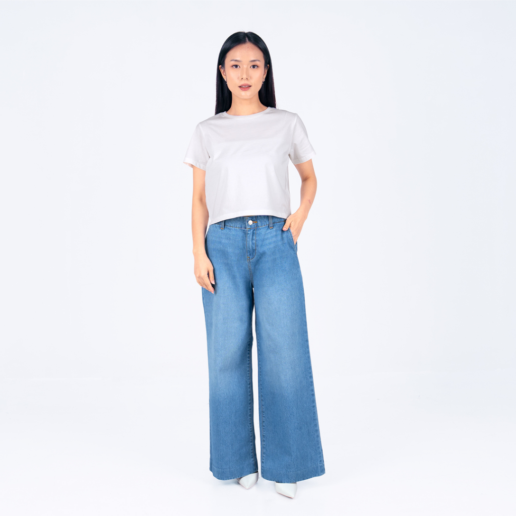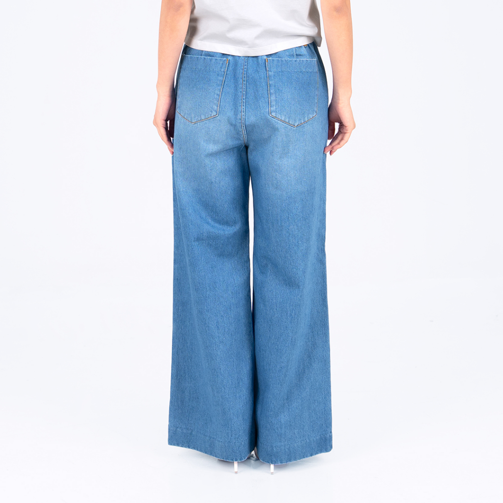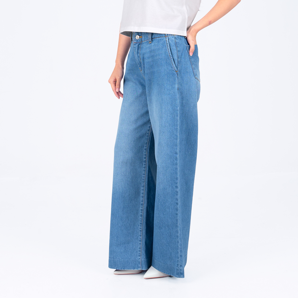 BENHILL Celana Panjang Wanita "SORA" Highwaist Loose Denim Pants Kulot Wide Leg Blue Jeans A897-322