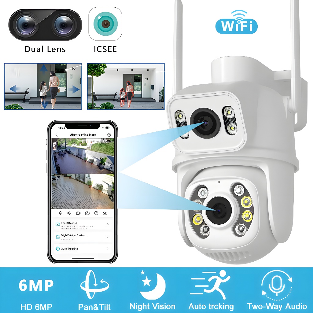 Upupin Cctv Wifi Outdoor 6Mp Dual Lens 360° Ptz Ip Camera Wifi Outdoor Kamera Cctv Waterproof Hp Jarak Jauh