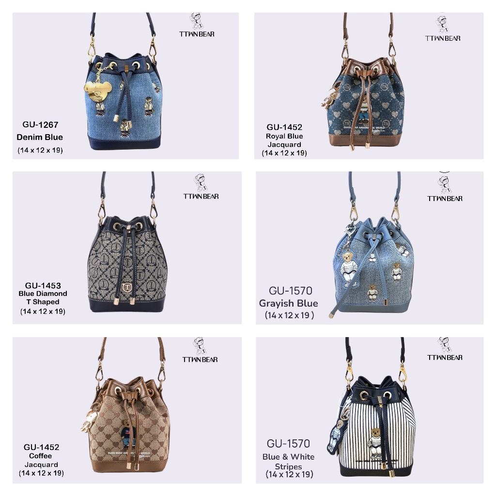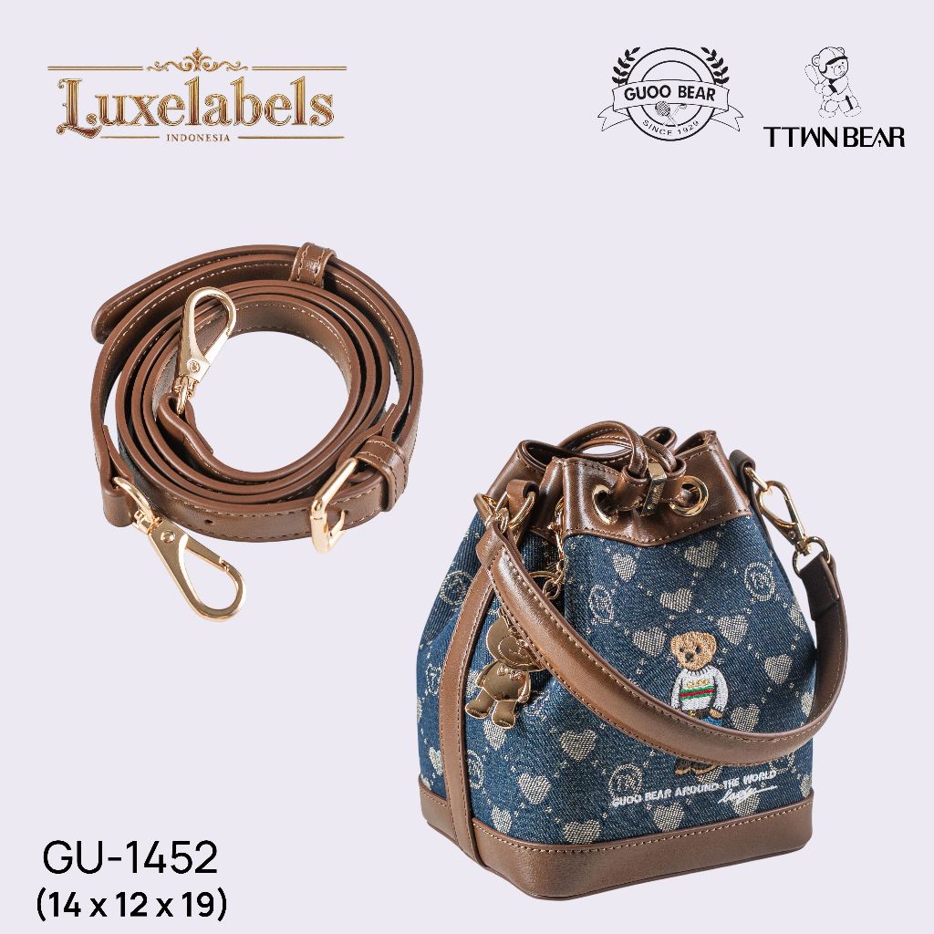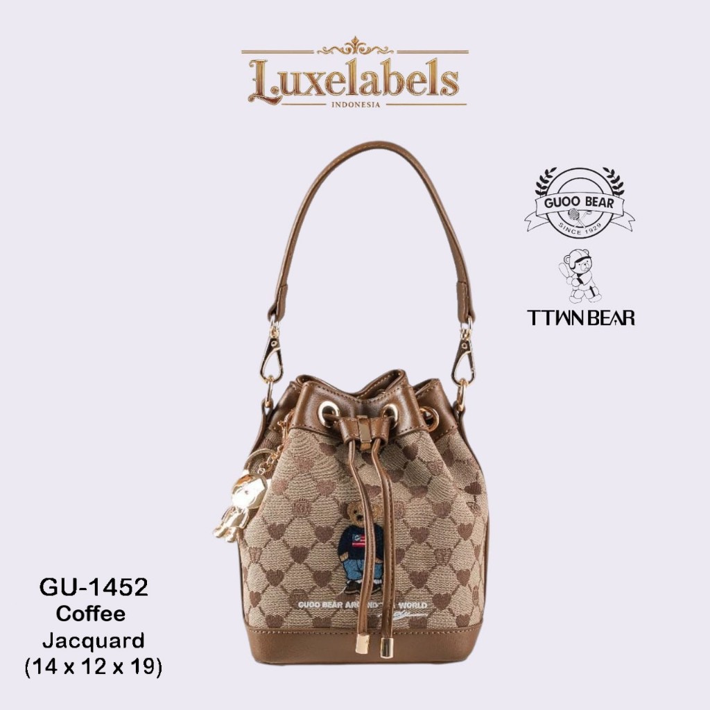Luxelabels - GUOO Bear Tas Bucket Serut Wanita Ukuran S Tas Selempang Motif Beruang