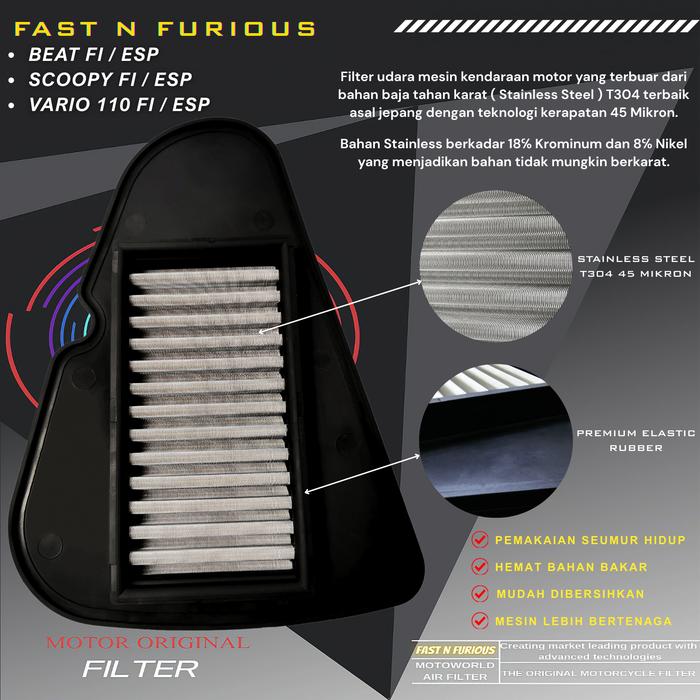 Filter Saringan Udara Stainless Beat Scoopy Vario FI ESP Original Fast N Furious - FILTER