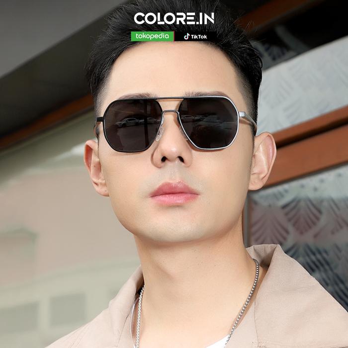 Kacamata Hitam Sunglasses Polarized Colore.in Gaya Pilot Pria 8692 - Hitam