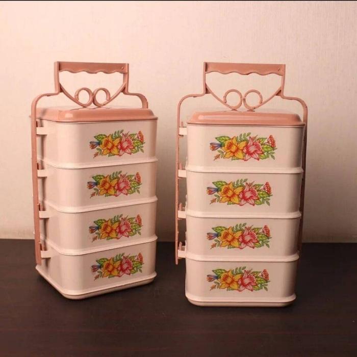 Rantang plastik persegi 4 susun dan 3 Susun moge pasific tempat bekal makanan untuk kerja piknik - 4 SUSUN