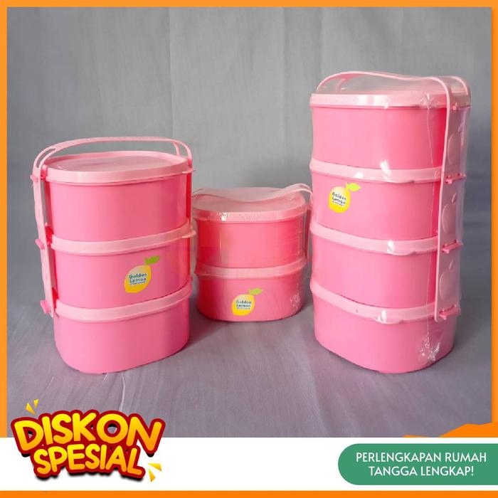 [PROMO 12.12] RP 123 RANTANG KECIL MINI / RANTANG PIKNIK SUSUN 2 / SUSUN 3 / SUSUN 4 PINK g0l6EN LEMON - 2 Susun