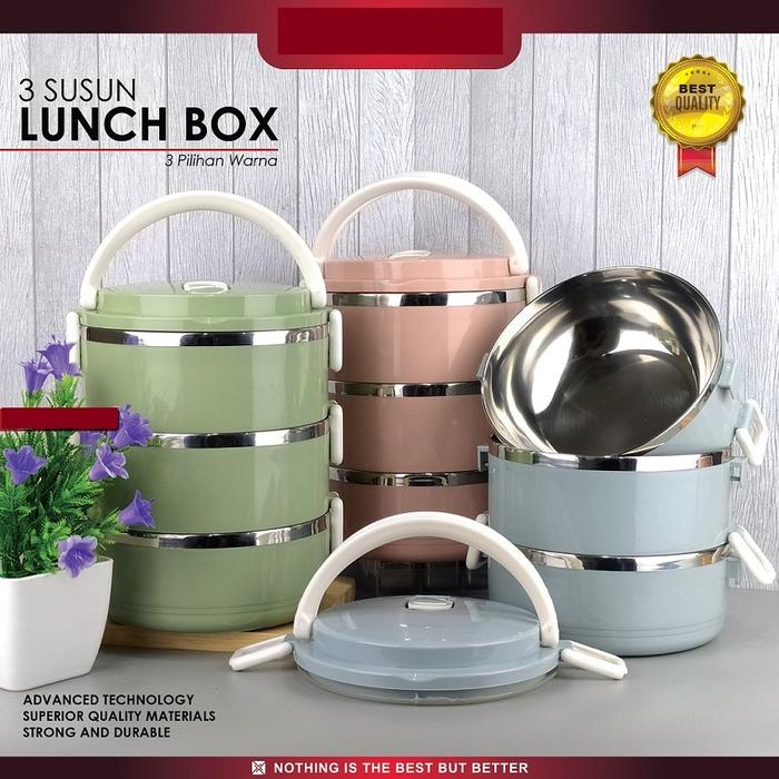 Rantang Lunch Box 3 Susun Warna Polos Elegan untuk Tempat Bekel Makanan - Kitchenware - 3susun