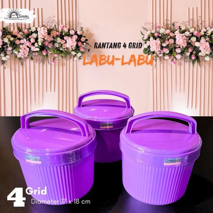 (SAMIAKU) rantang bekal 4 sekat grid anti tumpah tutup ulir plus pegangan plastik - HIJAU 1PCS
