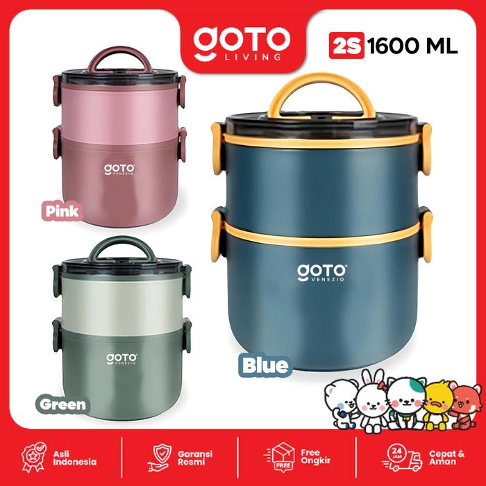 [c06] Goto Living X Aisar Sultan Venezio Kotak Makan Bekal Anti Tumpah Lunch Box Set Rantang Susun - 2s 1600ML Pink