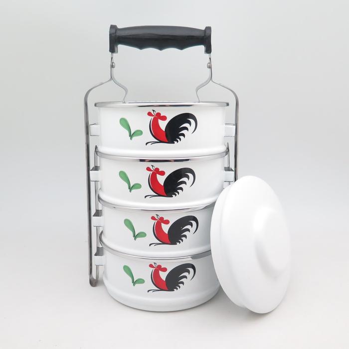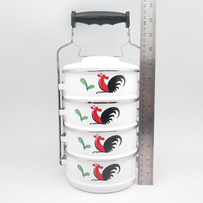 Rantang Ayam Jago 2 3 4 Susun Bahan Enamel Anti Karat Model Vintage Food Grade / Tempat Penyimpanan Bekal - 4 susun