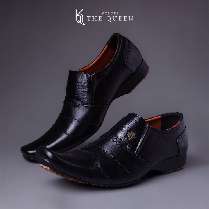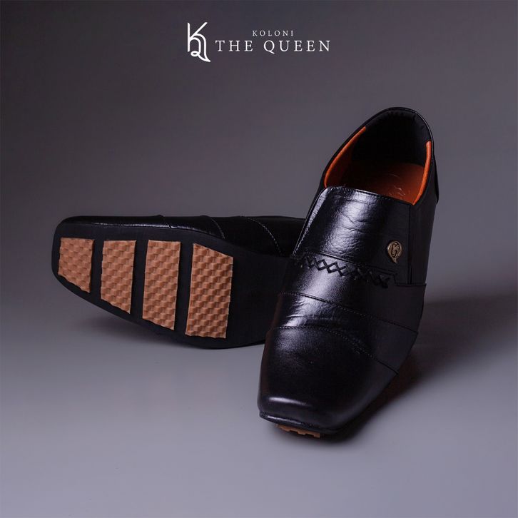 KQ Indonesia Sepatu Pantopel Pria K-503 Original Kulit Asli-Black