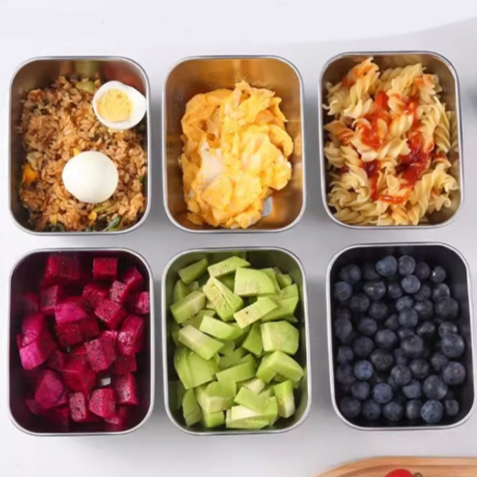 Minotti Kotak Makan Siang Persegi Wadah Penyimpanan Makanan dengan Tutup, Wadah Makanan Ringan Kulkas, Baja Tahan Karat