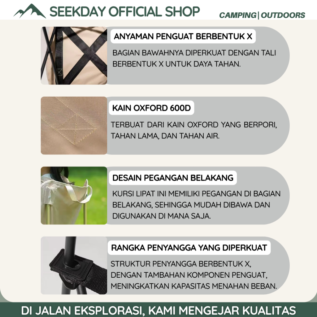 SEEKDAY Mini Kursi Lipat Bulan Outdoor Wanita Kursi Lipat Camping Portable & Lighting Beban 120KG Cerah & Tersenyum Styl
