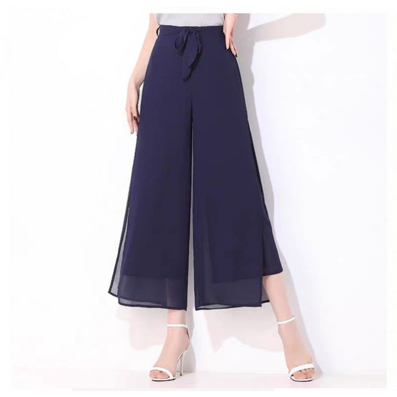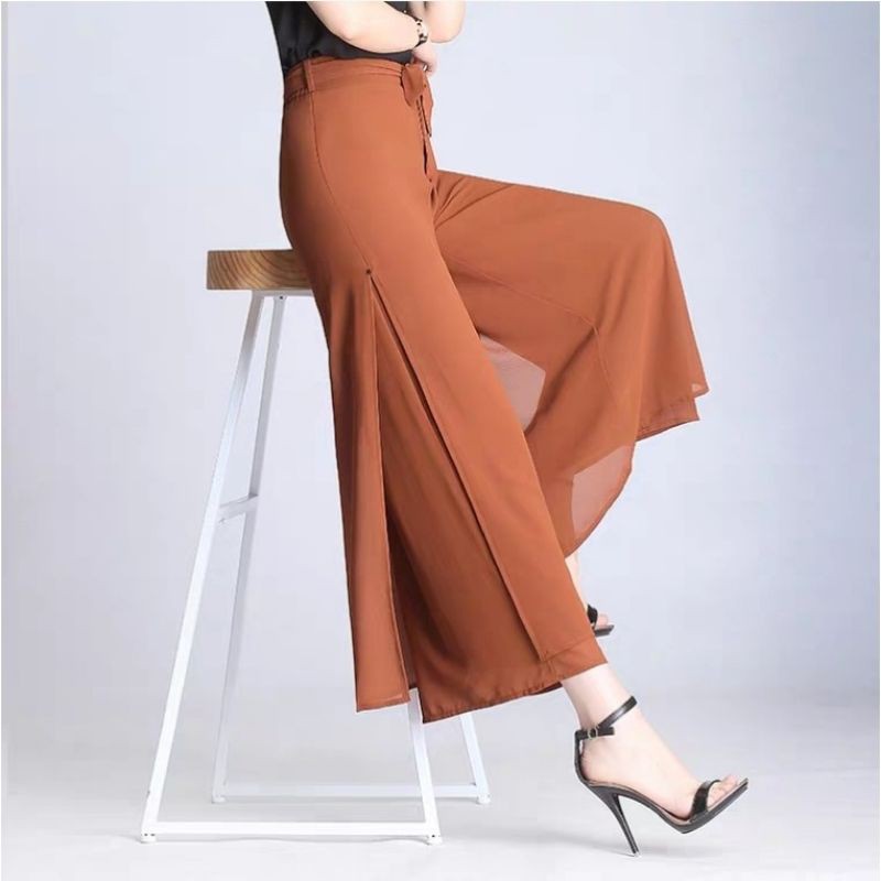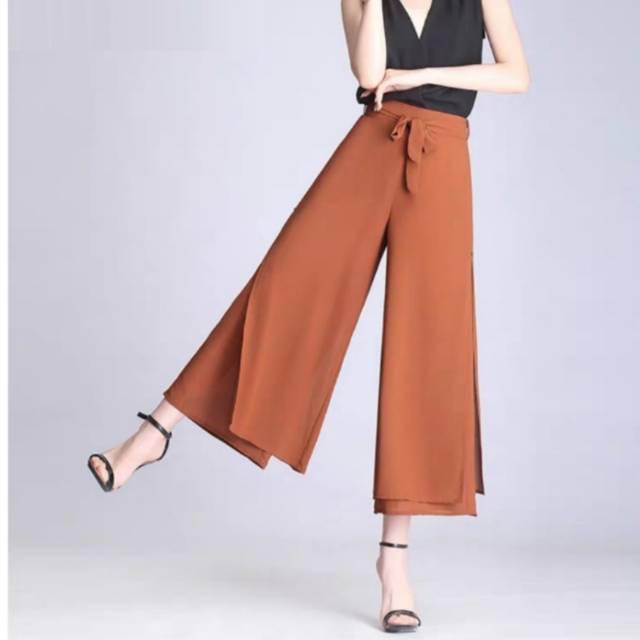 5 wrn 9635 ETSY SPLIT CULLOTE Kulot Polos Crepe Chiffon Fashion Celana Bahan Kasual Santai