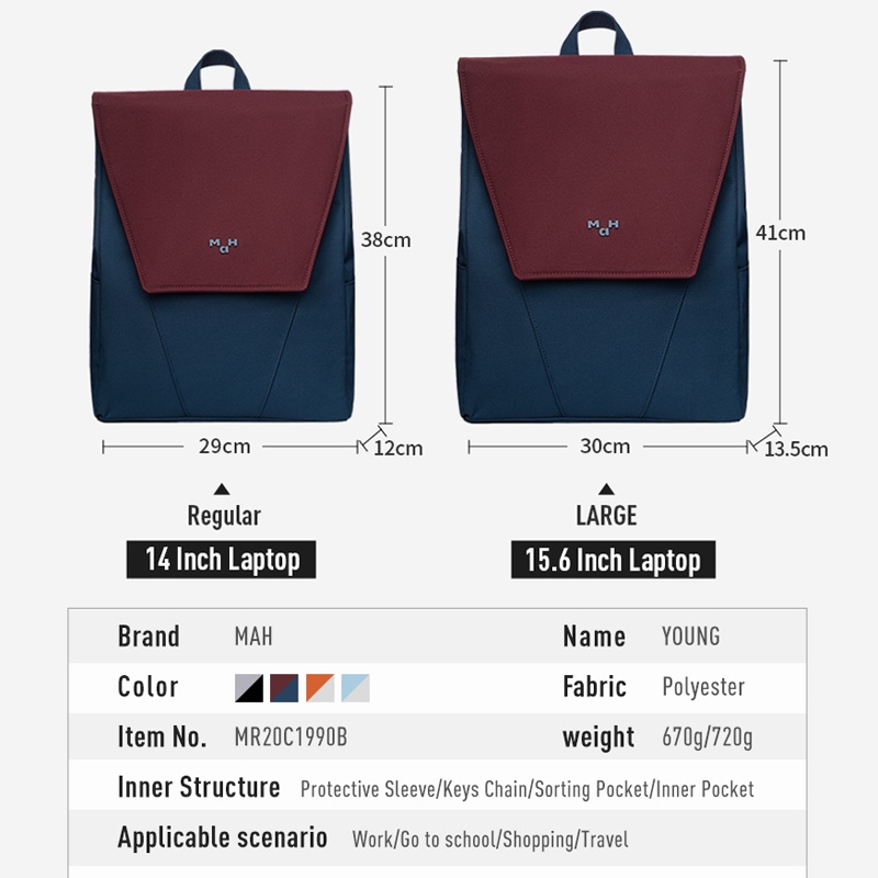 MAH Young Mix Trendy Waterproof Laptop Backpack (14/15.6")Tas Ransel Untuk Bekerja Atau Sekolah