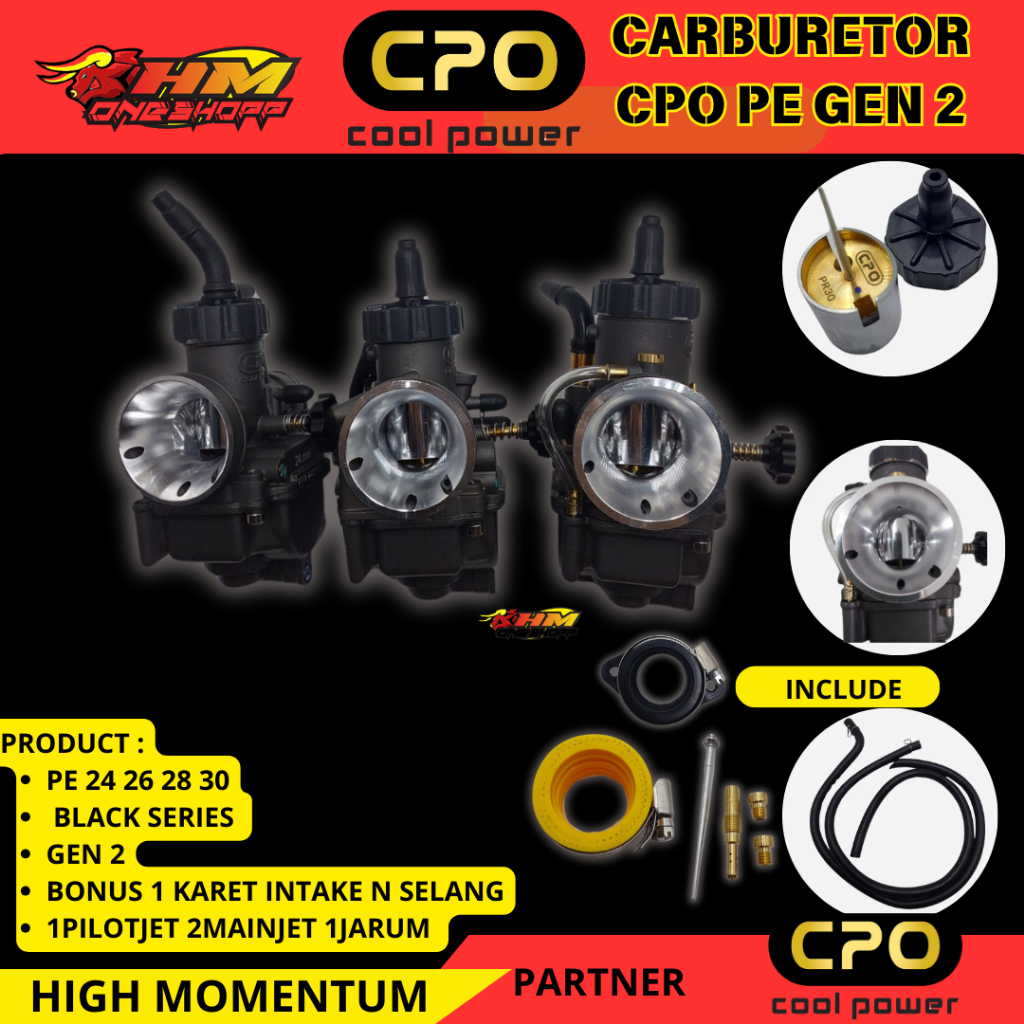 Karburator CPO PE 24 26 28 30mm gen 2 racing black karbu pe bonus pilot jet karet intake main jet jarum dll