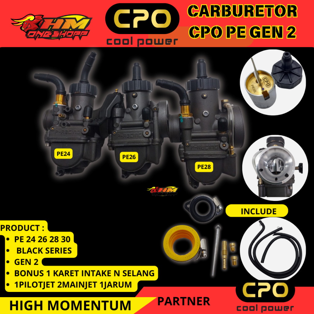Karburator CPO PE 24 26 28 30mm gen 2 racing black karbu pe bonus pilot jet karet intake main jet jarum dll