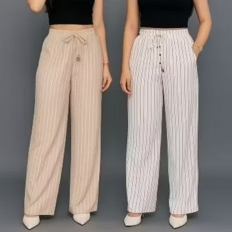 Yulian - Everyday Pants Strip Kulot Celana Panjang Wanita Garis Korean style Kekinian