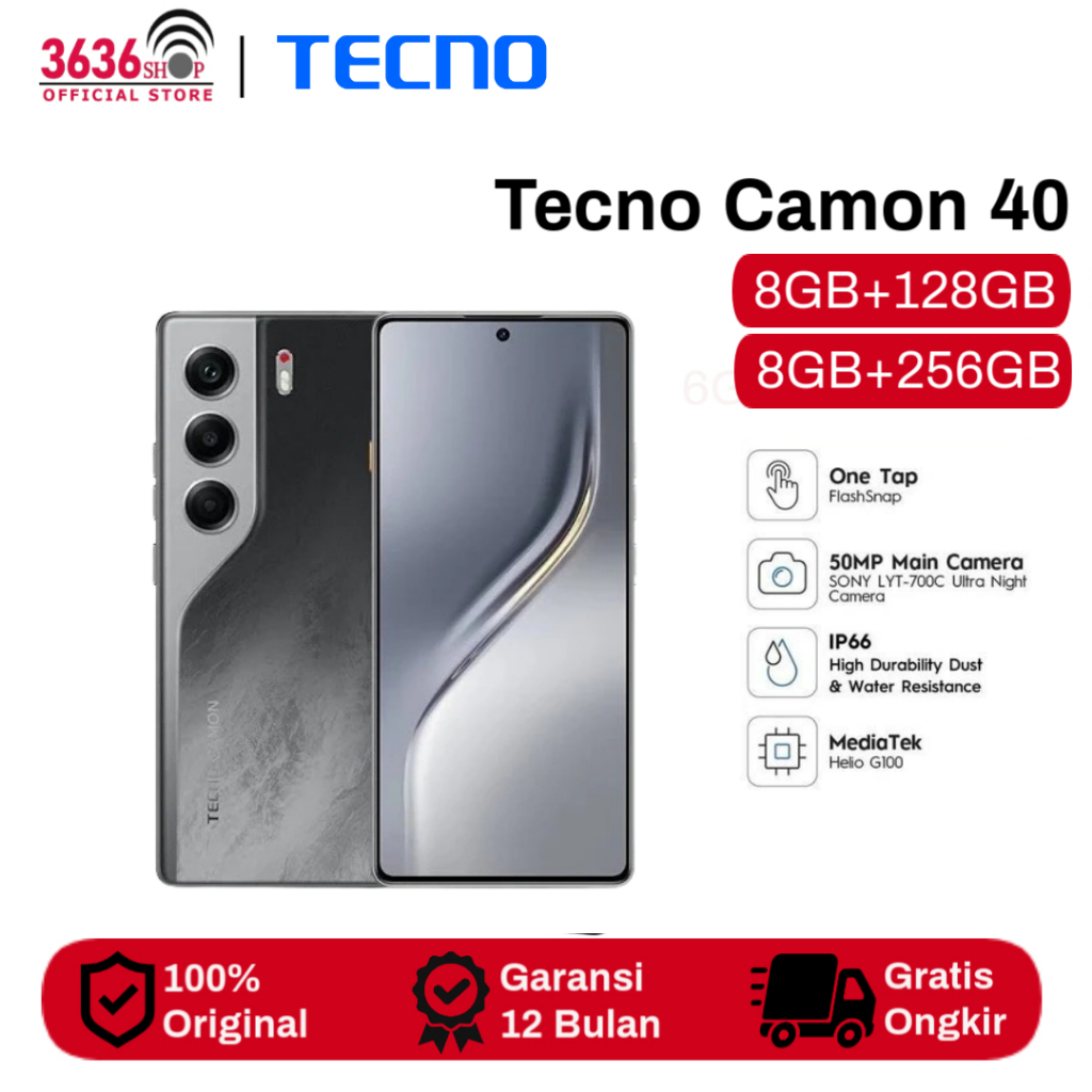 Tecno Camon 40 8GB/128GB | 8GB/256GB - Helio G100 AMOLED Display 50MP Dual Camera OIS System Garansi Resmi 1 Tahun