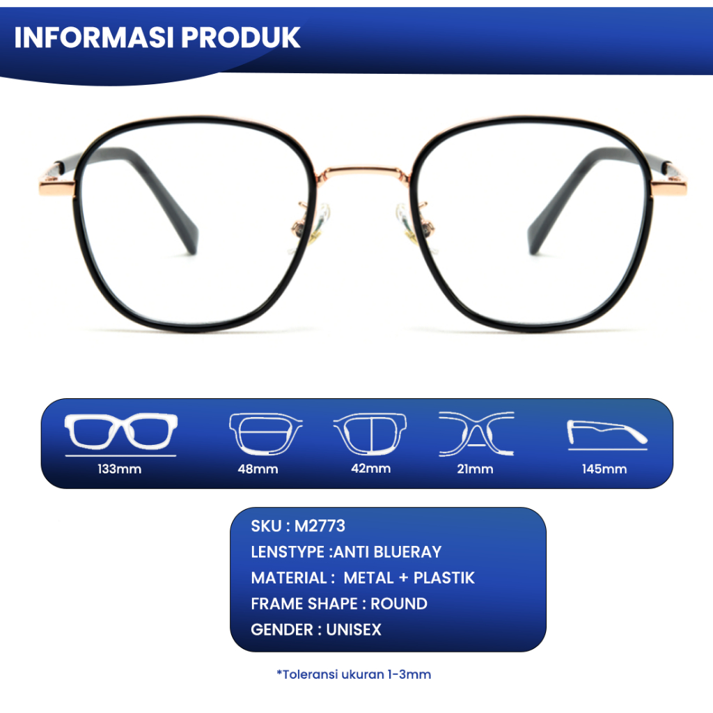 IOOI Eyewear - Kacamata Round Metal PC Lensa Anti Blueray kacamata minus photocromic pria wanita original