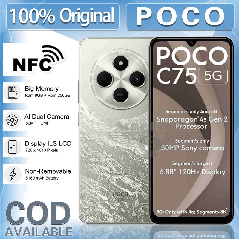 hp xiaomi poco c75 8/256gb NFC Versi Baru Ori resmi fullset segel 5160 mAh | 6.88 inch | 52MP Promo