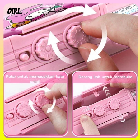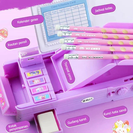Tempat pensil multifungsi Kuromi untuk anak perempuan, tempat pensil otomatis dengan kunci kata sandi