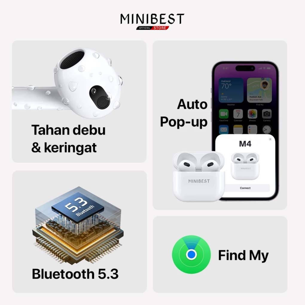 MINIBEST M4 Gen 3 TWS Earphone Headset Bluetooth V5.2 In ear Detection Wireless Charging