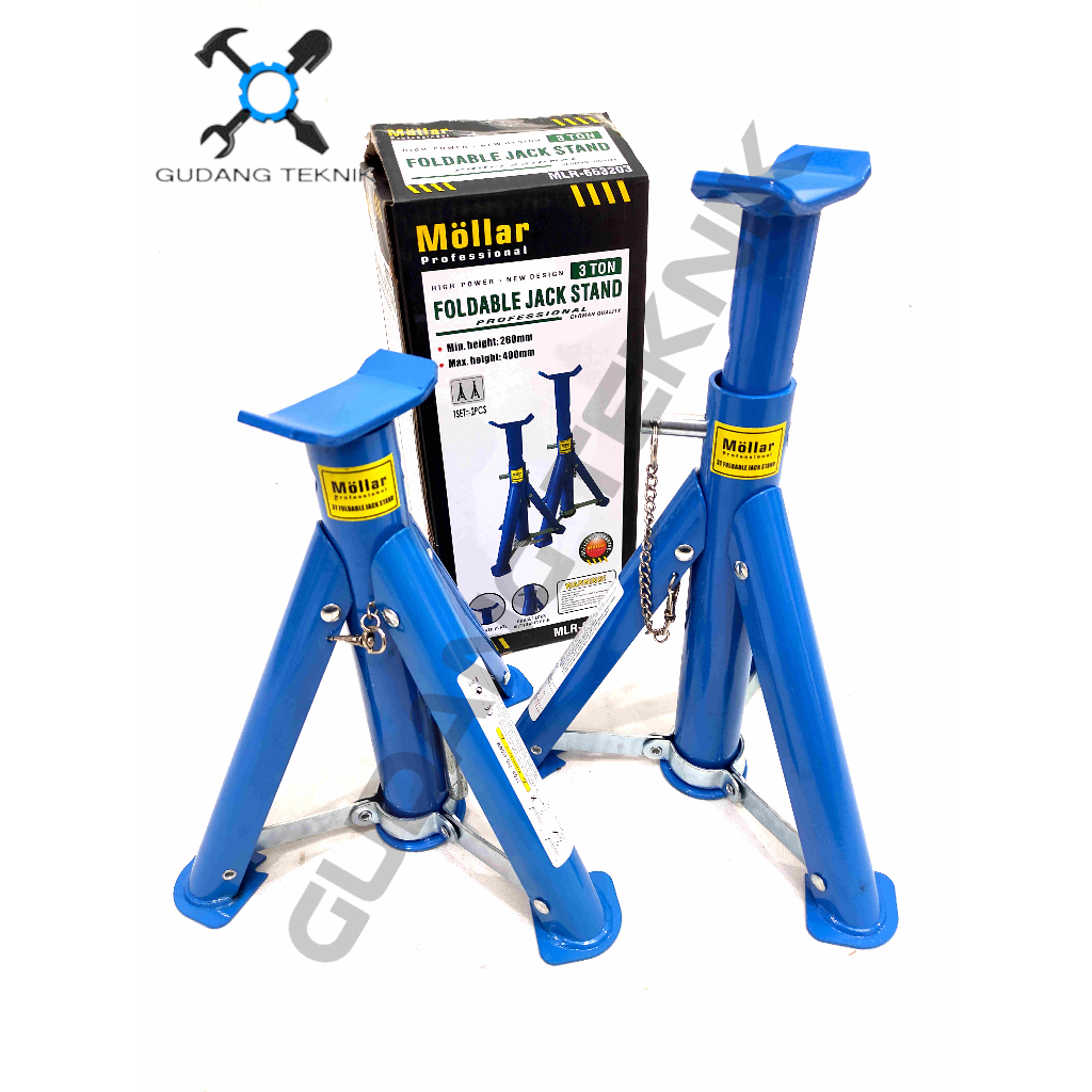 Jack Stand 3 Ton LIPAT SET isi 2 Pcs MOLLAR / Alat Tahanan Dongkrak Portable 3Ton Penyangga Body Mobi