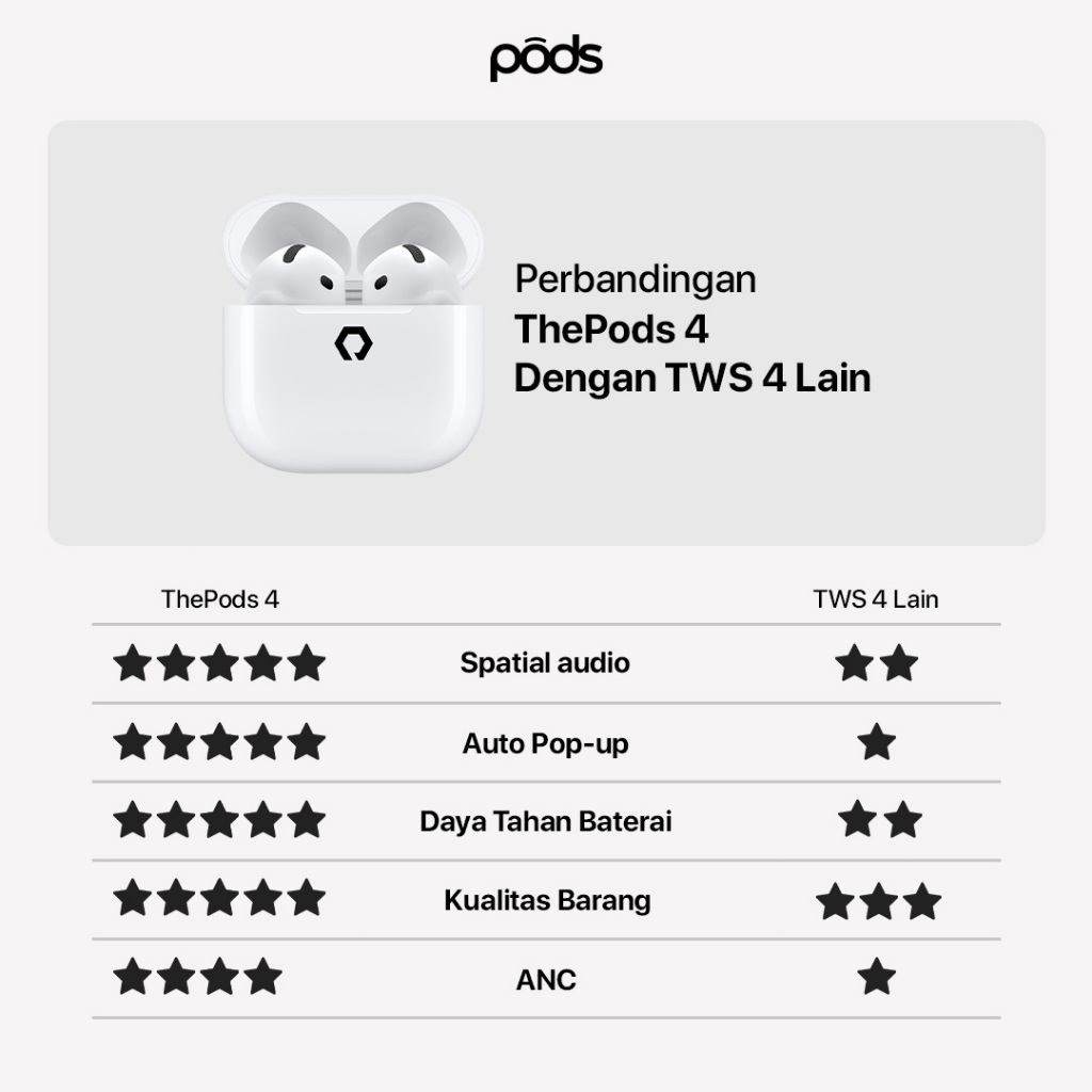 [NEW LAUNCH] ThePods PRIME 4 Generation Series Bluetooth V5.4 Earphone ANC ENC Spatial Audio IMEI Detect Wireless Charging iOS Android by Pods Indonesia