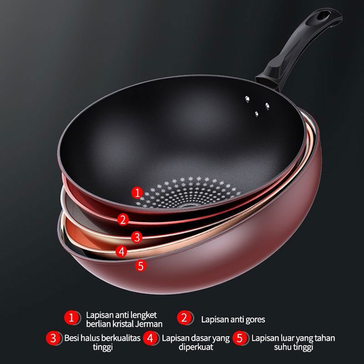 Diamond Wok Pan Wajan Penggorengan Lengket Anti Batu Medis Ukuran 33cm Wajan Medis Antilengket Bahan