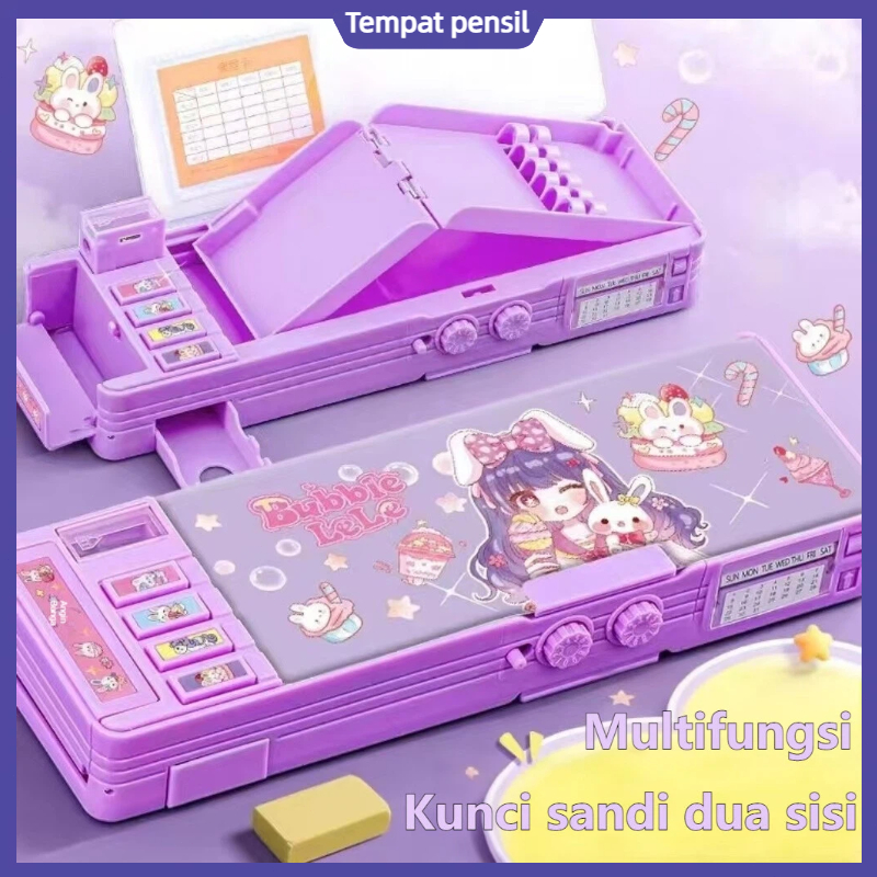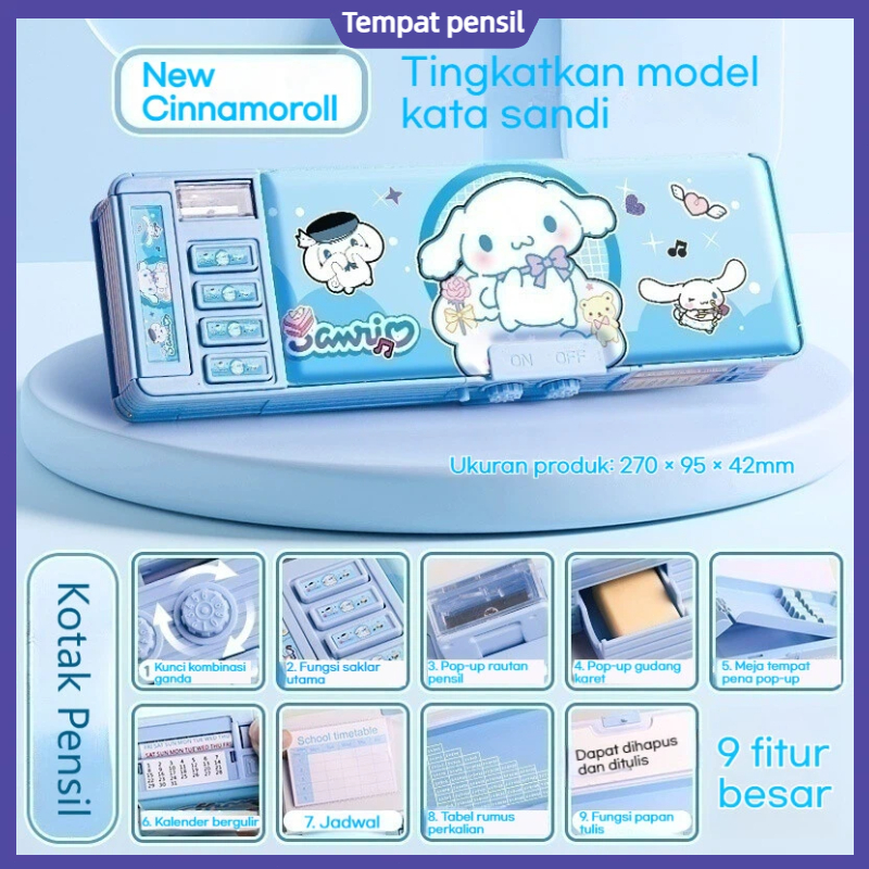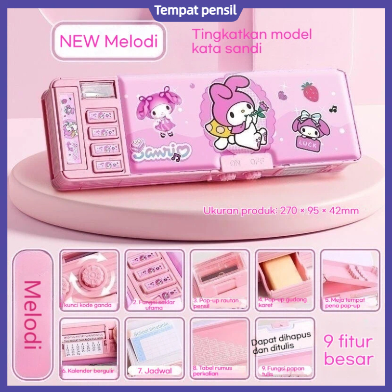 Kotak Alat Tulis Multifungsi Kuromi untuk Anak Perempuan 2025 Kotak Pensil Otomatis Baru Kata Sandi Kompartemen Mesin Ko