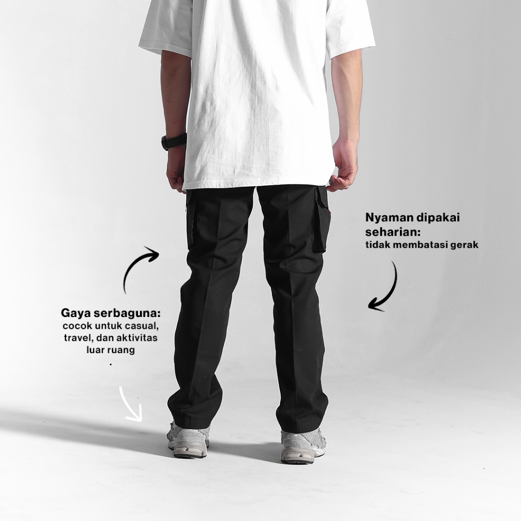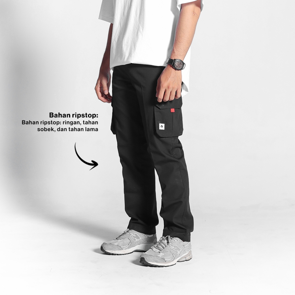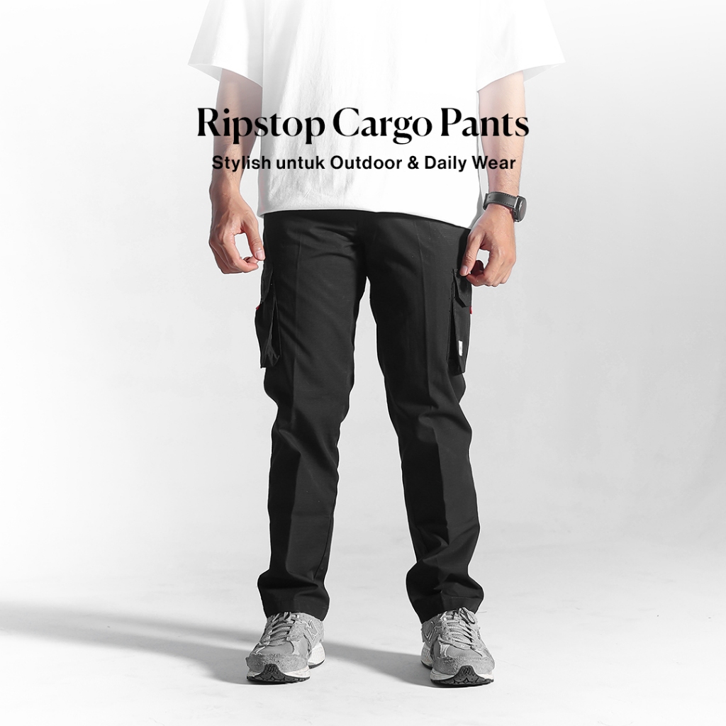 Troveast Celana Cargo Panjang Ripstop Black Slim Fit