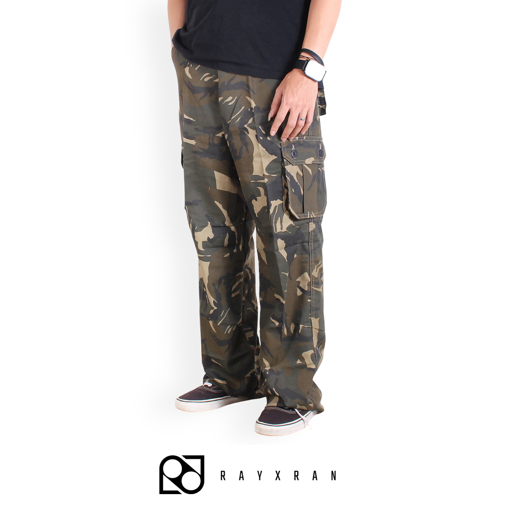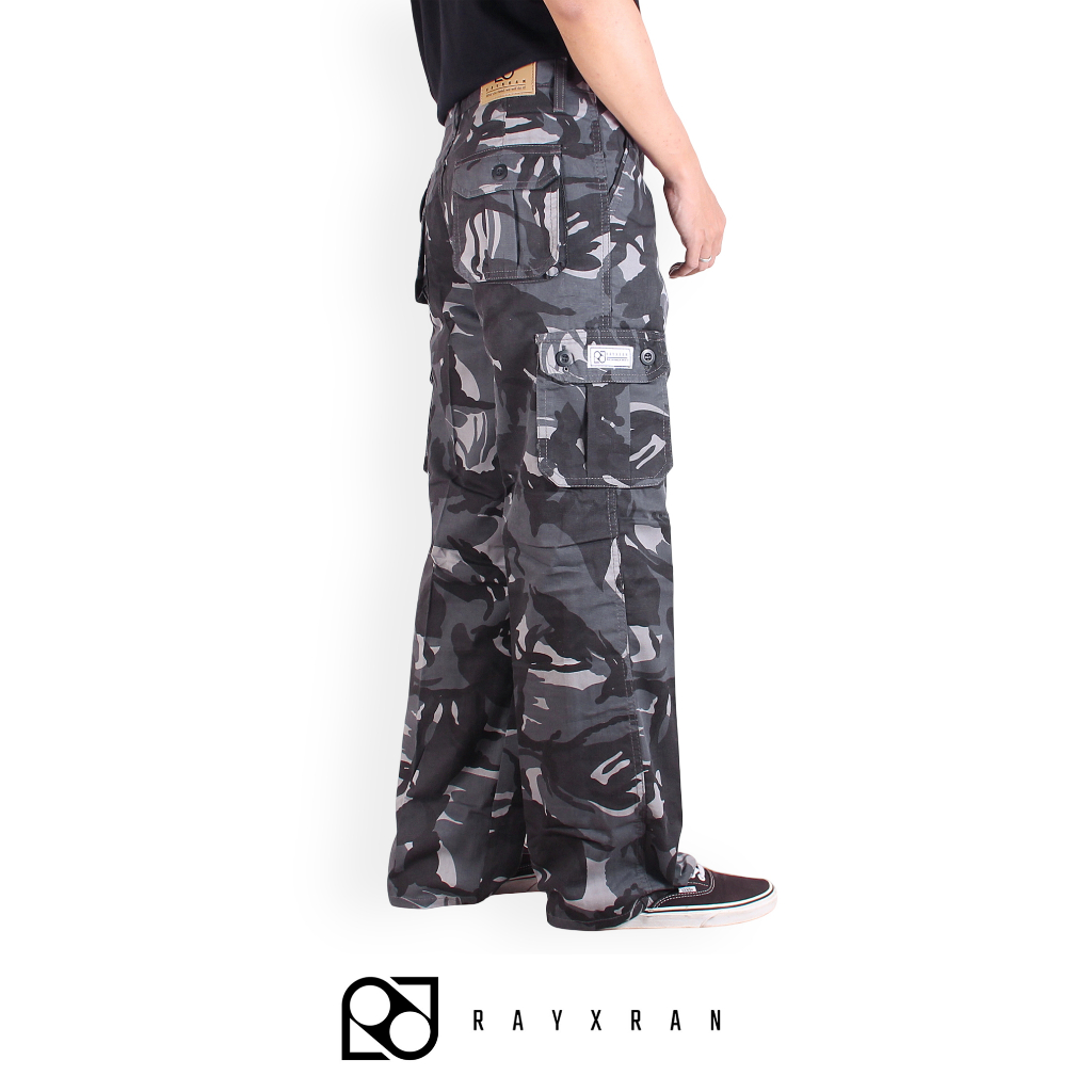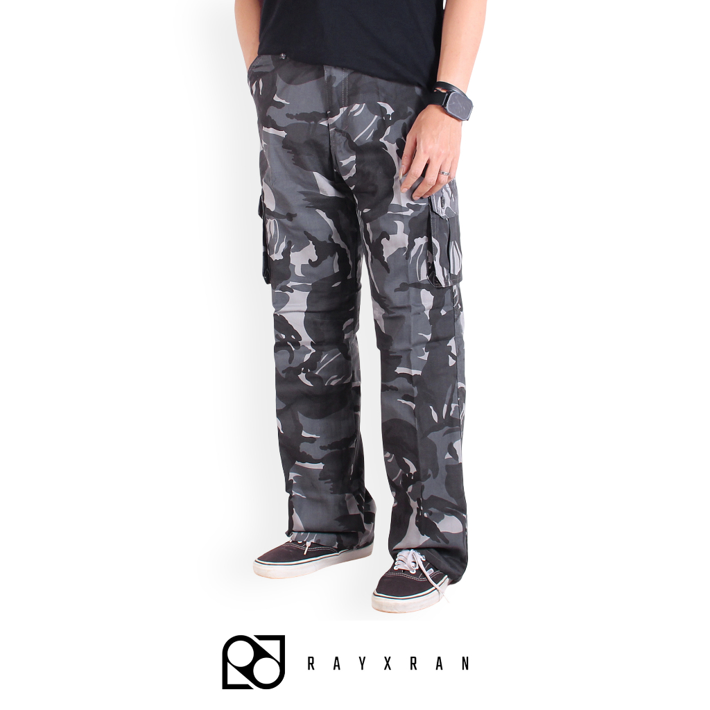 RAYXRAN Celana Cargo Camo Loreng Abu Long Pants - Model Standar/Reguler Fit - Outdoor