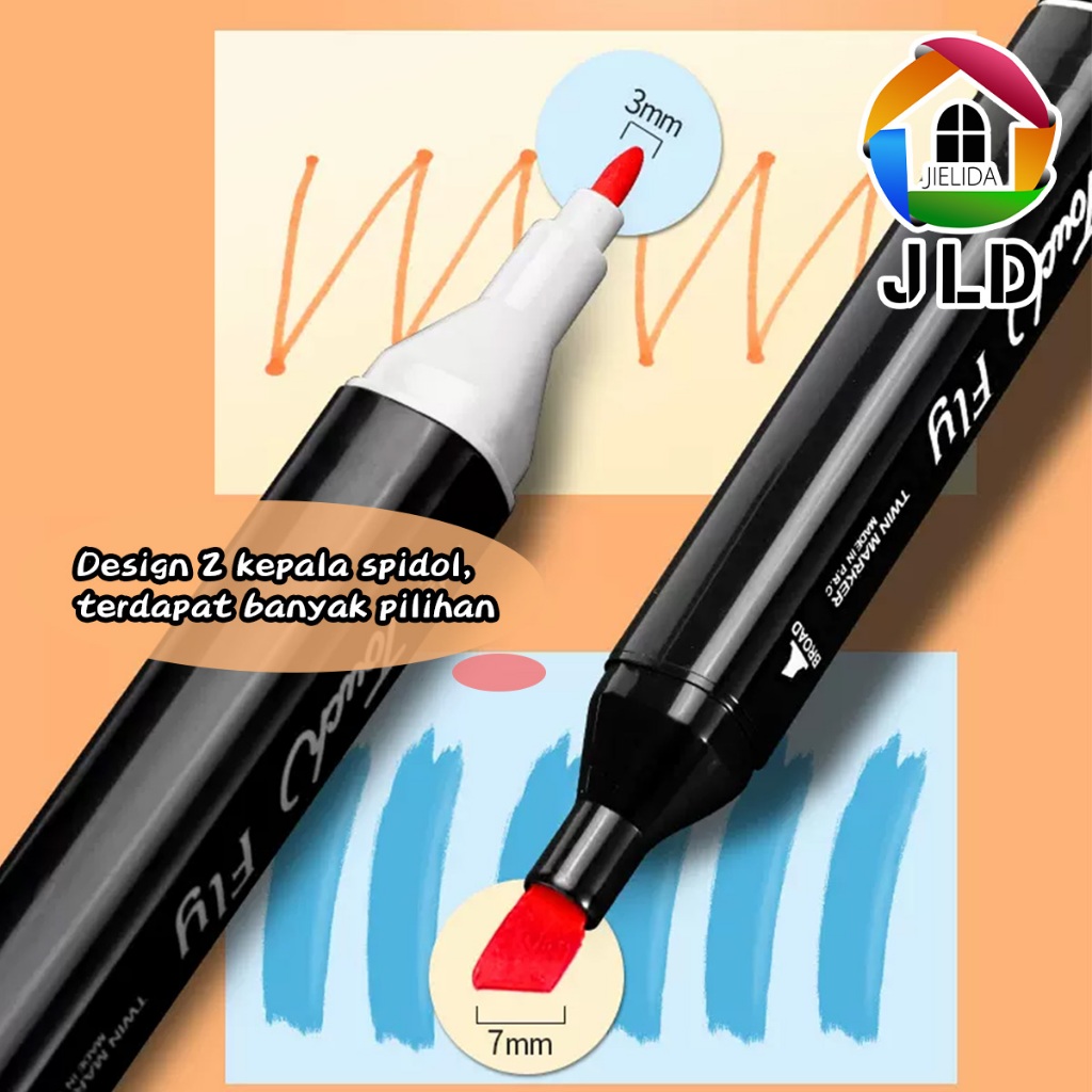 JieLiDa Spidol Warna Stabilo Touch 24/36/48/60/80 Warna Dual Side Fine Art Brush Pen Sketsa Animation Markers Twin Marke