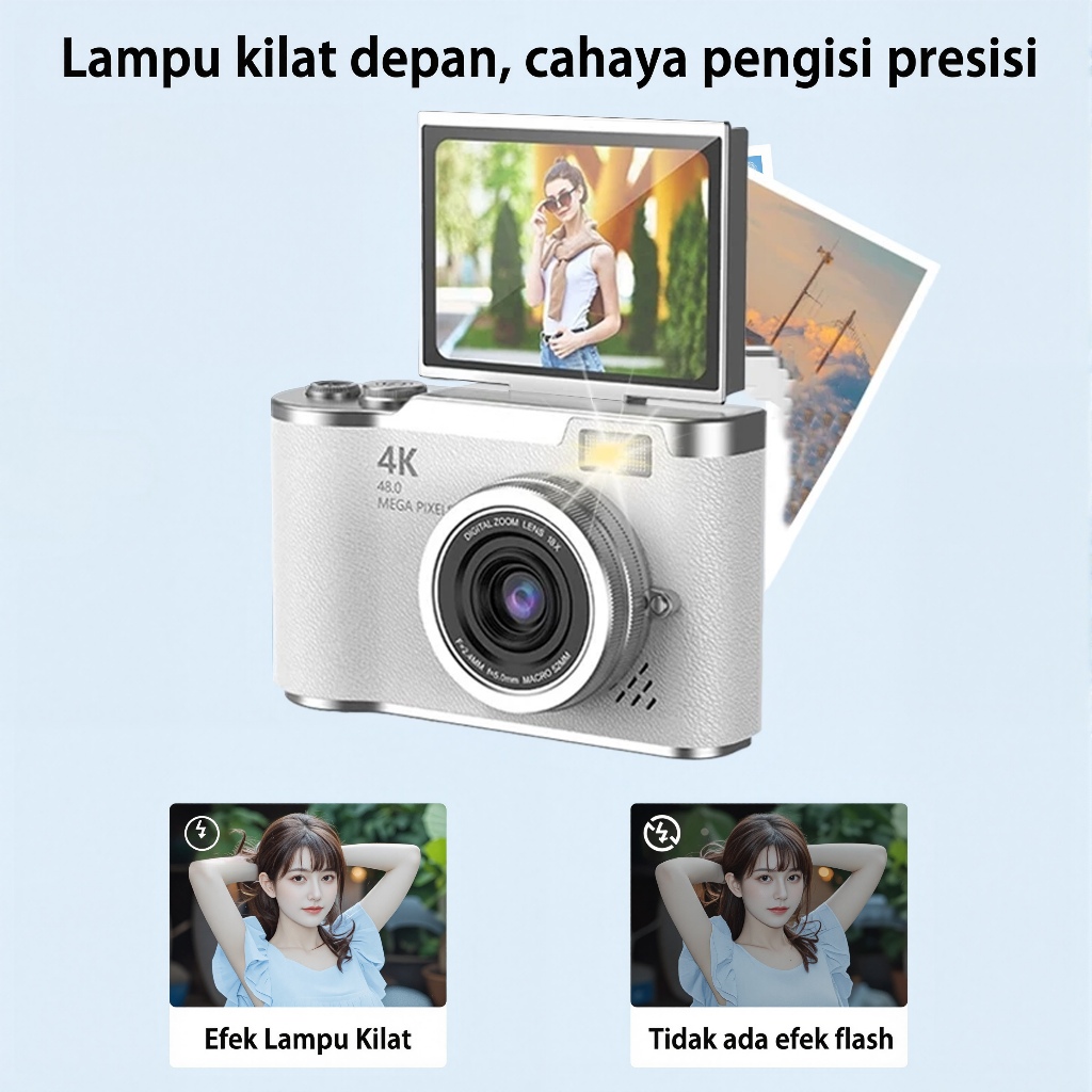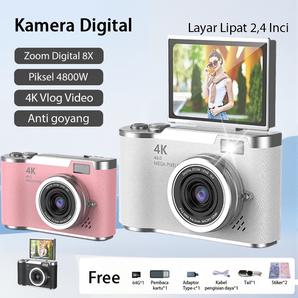 Kamera Digital 48MP 8X Zoom Kamera Digicam Layar Balik 180° LCD 2,4 Inci 4K Vlog Anti Goyang Filter Kamera Pocket untuk Hadiah Pemula Retro Kamera