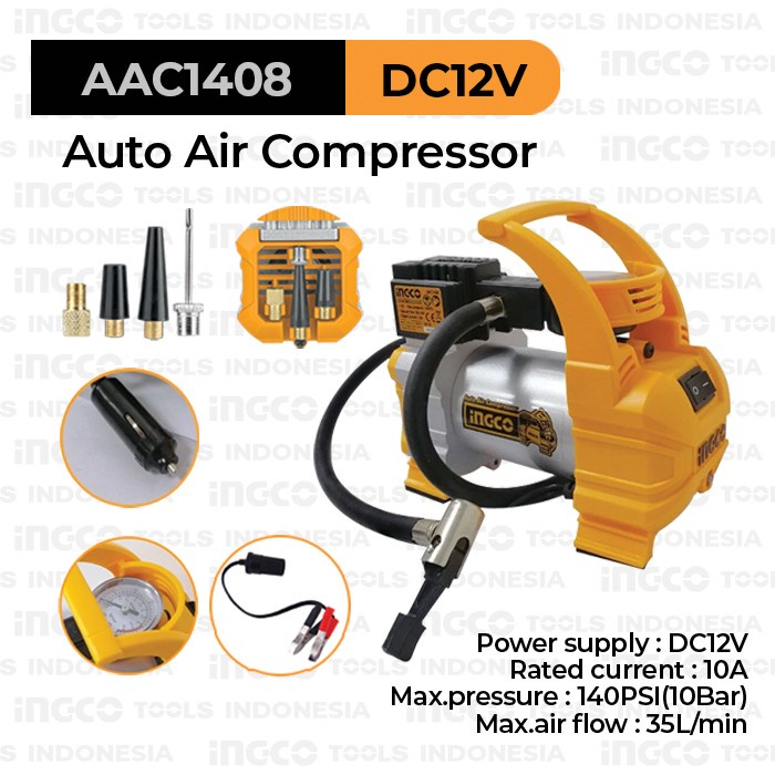 INGCO Mini Air Compressor Pompa Kompresor Isi Angin Ban Mobil DC 12v