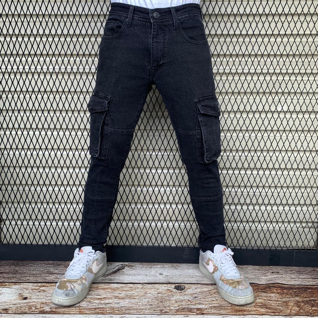 TONNY CLEIN | Celana Cargo Panjang Pria Skinny Strech Wash Grey