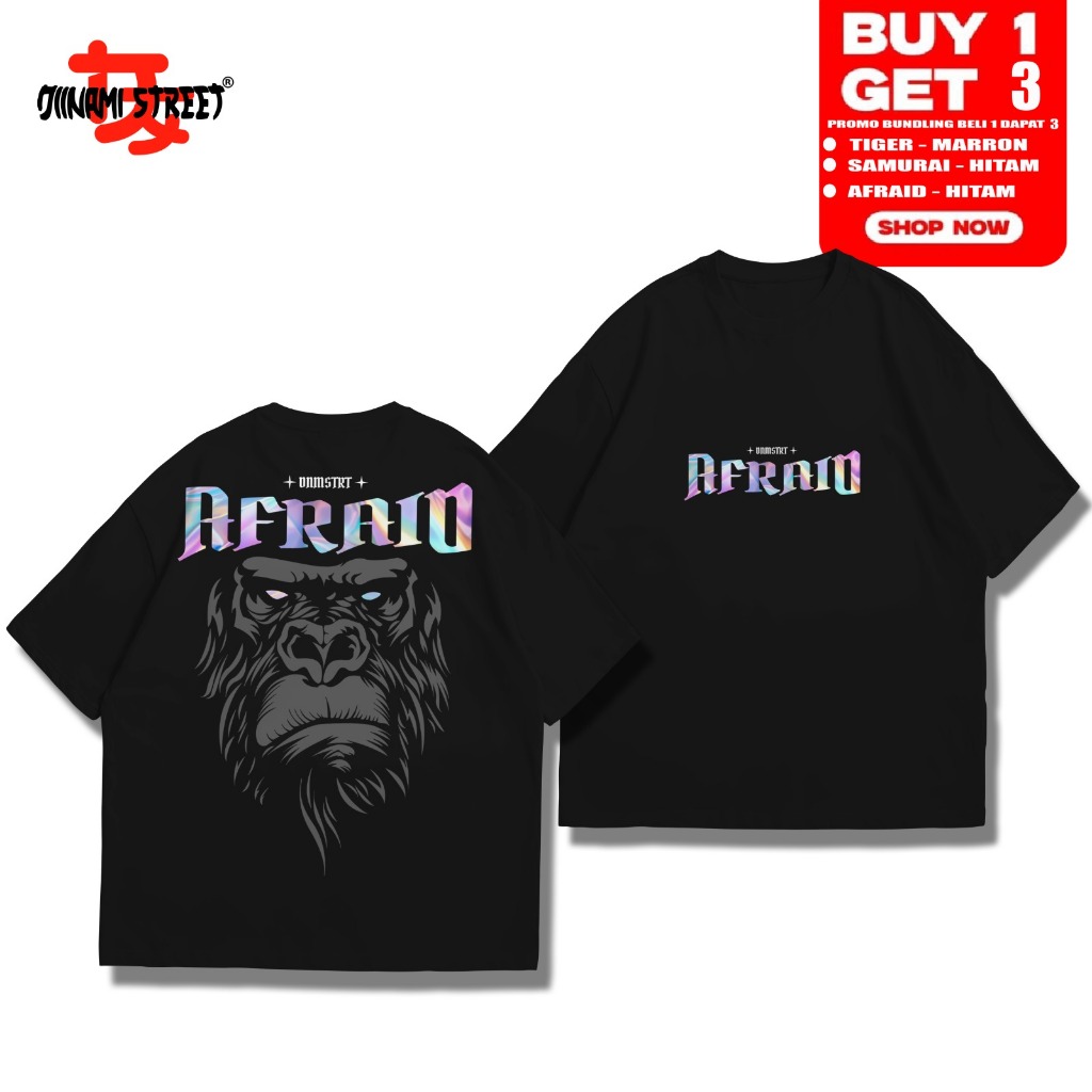 Buy 1 Get 3 Kaos Distro Tshirt BUNDLING SAMURAI | TIGER | AFRAID Unisex Pria Wanita Cotton Combed 24s