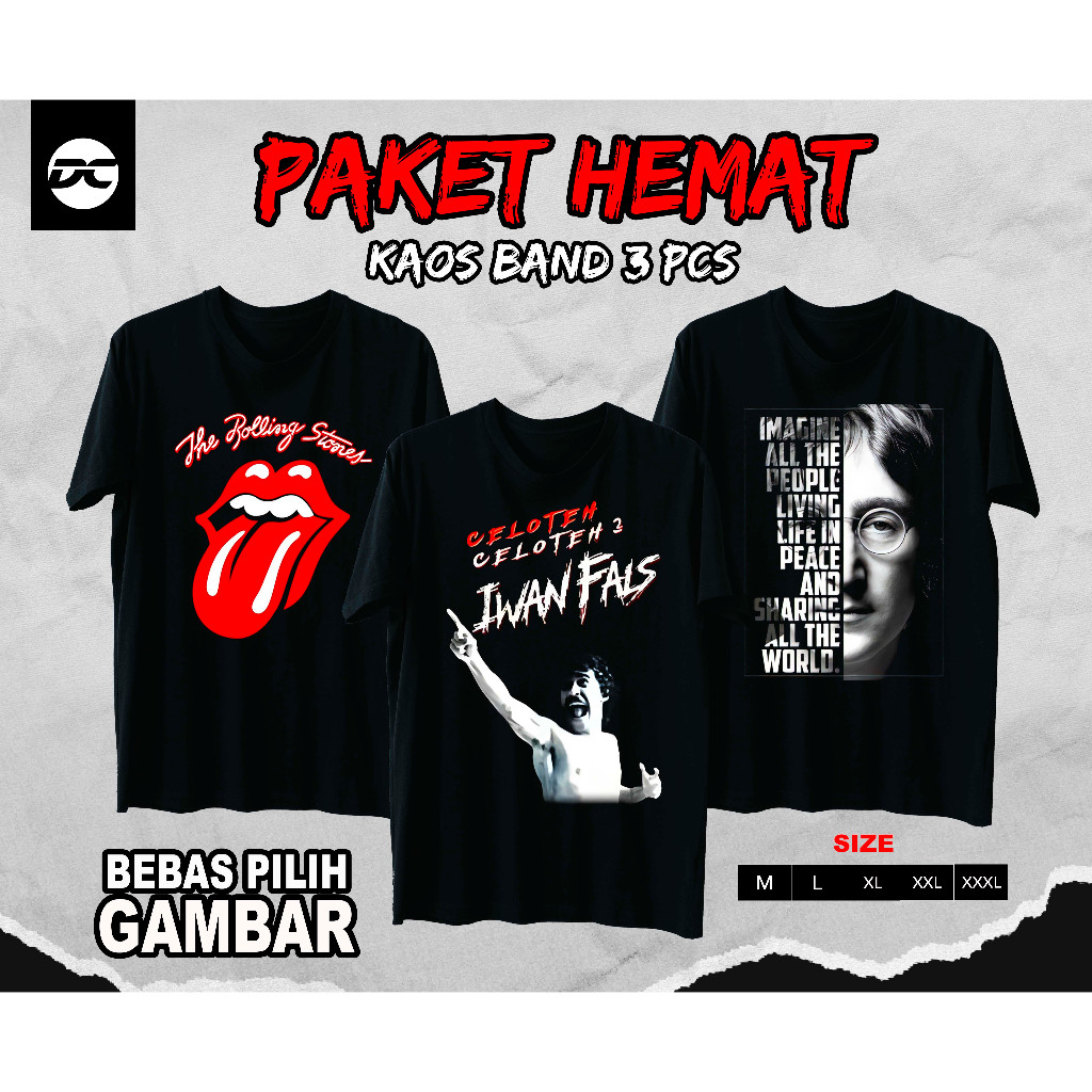 PAKET HEMAT KAOS BAND 3 PCS ( BEBAS PILIH 3 KAOS ) / BAJU BAND PRIA WANITA POP,ROCK,METAL / KAOS DISTRO COMBAD 24S