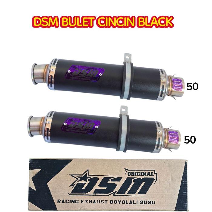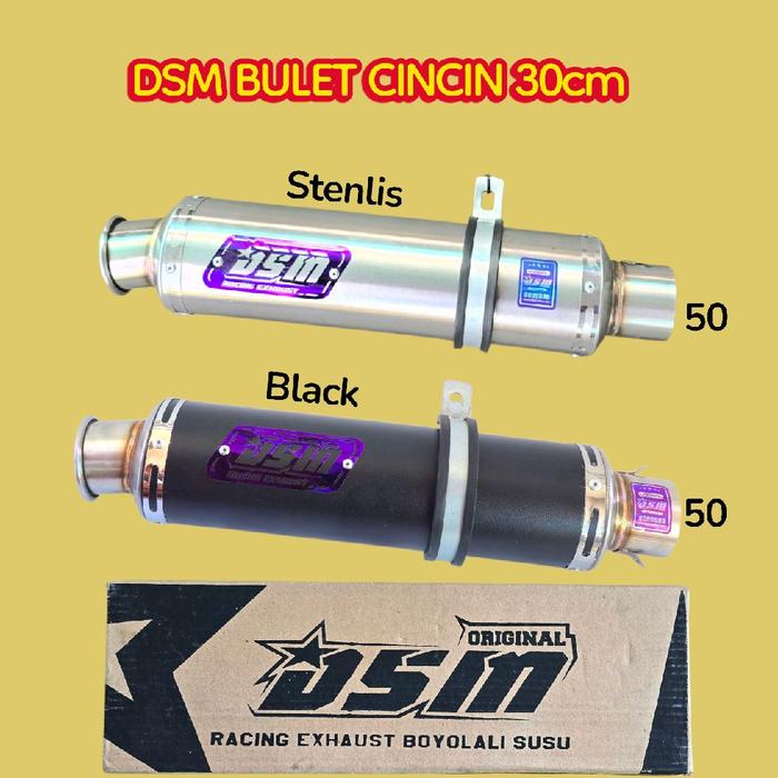 Knalpot Dsm Bulet cincin Ngebas Adem panjang 30cm black dan stenlis Motorcycle Racing