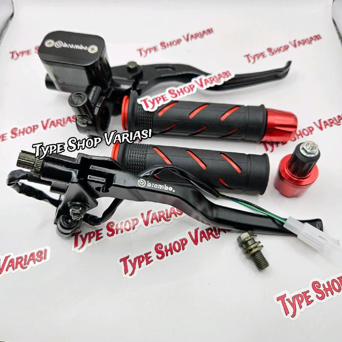 Paket 3in1 Master Rem Tabung Tipe Kotak + Handgrip Sisik + Jalu Stang Cnc Handle Kopling Motor