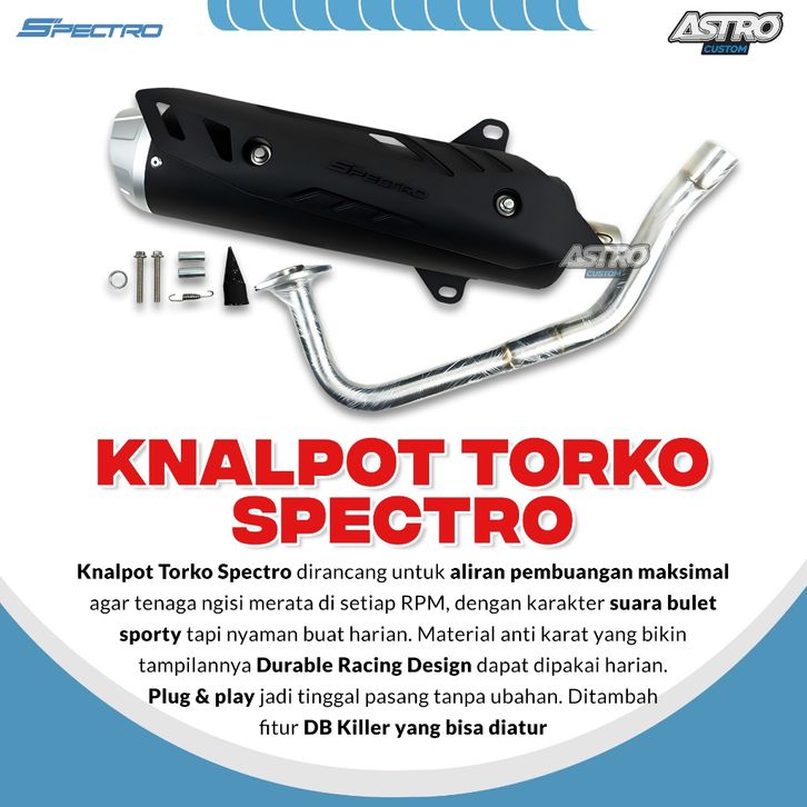 Spectro Knalpot Torko Vario 125 Vario 150 New LED Kenalpot Standar Racing Full Package Stainless