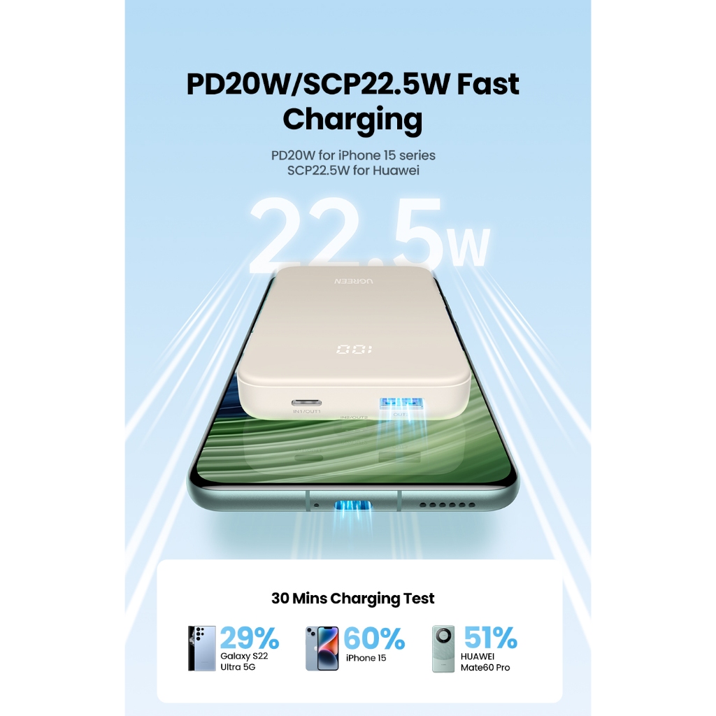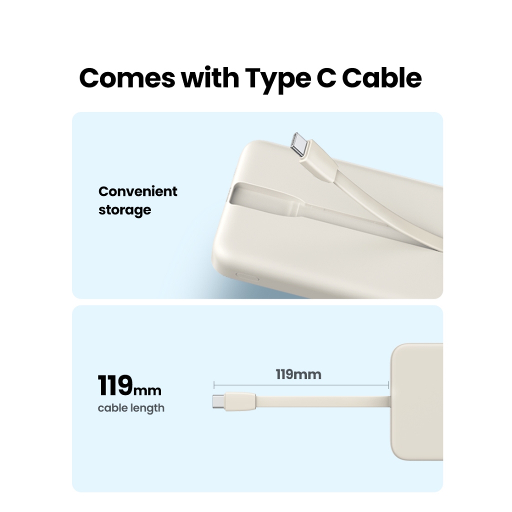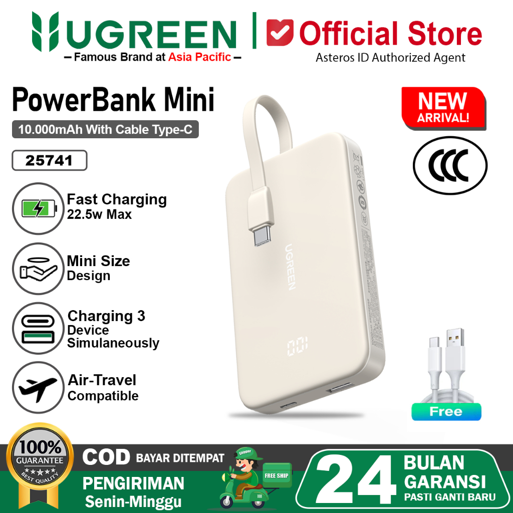 UGREEN Power Bank CCC 10.000Mah Built-in Cable PD Type C Fast Charging 20w 25741