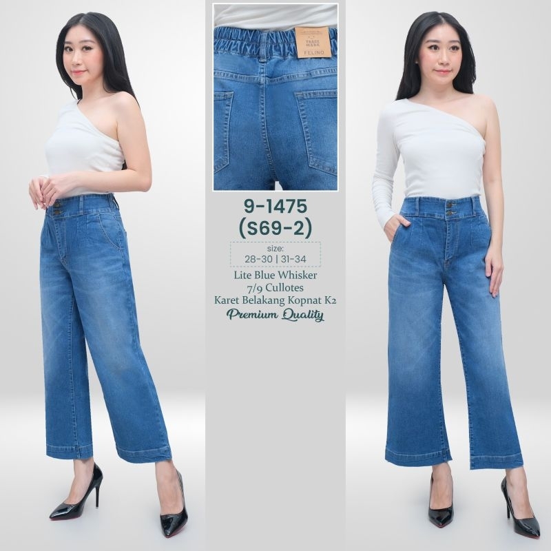 CELANA JEANS KULOT WANITA MISS2000 7/9 KARET BELAKANG KANCING 2 Sz 28-34