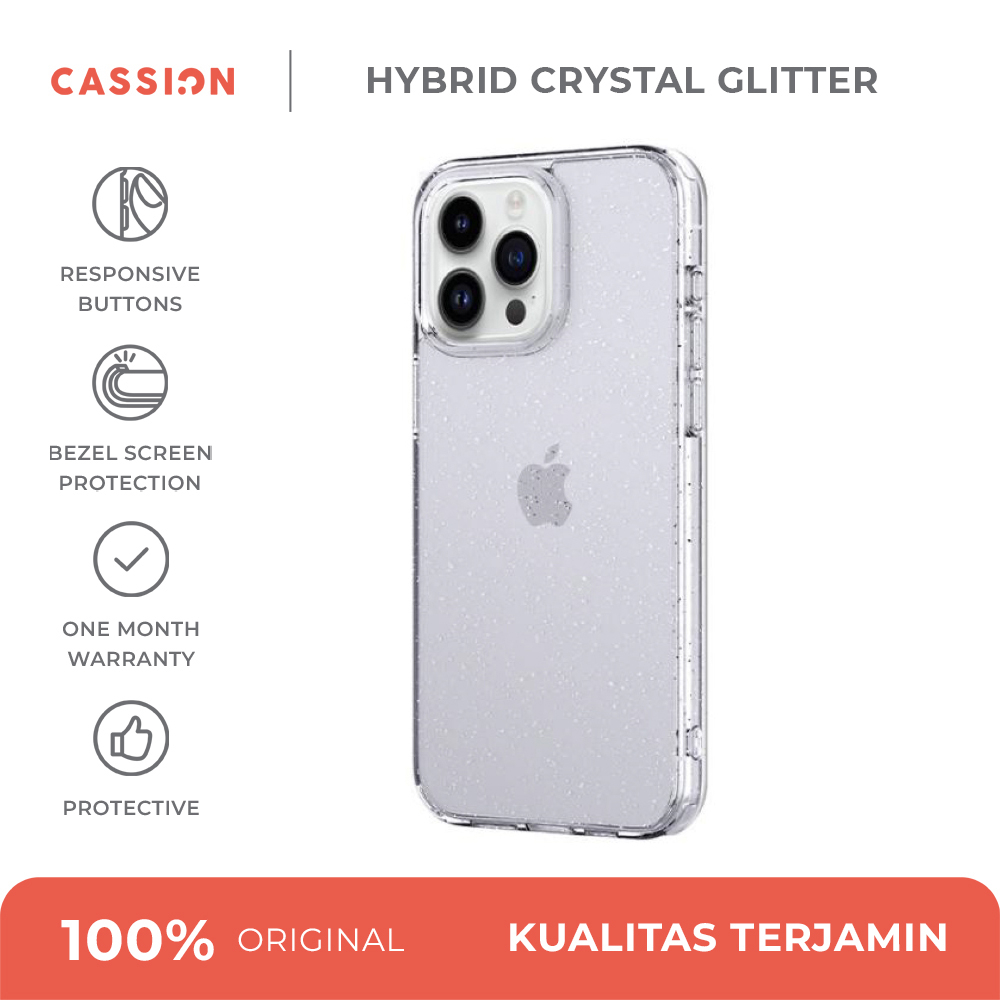 Case iPhone 17 16 15 14 13 Plus Pro Max Air 16e Cassion Premium Hybrid Crystal Glitter Black Clear Polos