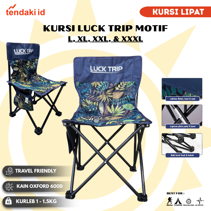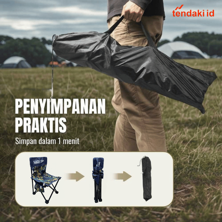 Lucktrip Kursi Lipat Outdoor Portable Folding Camping Chair Bangku Mancing Piknik Portabel Free Tas