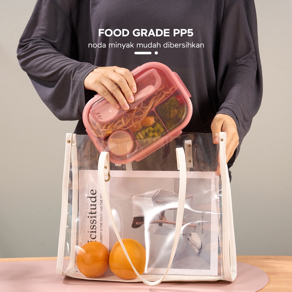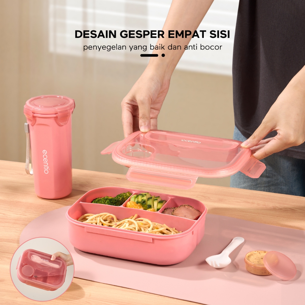 ecentio tempat makan set anti tumpah 1200ml+botol minum 500ml Kotak Bekal Makan 4 sekat BPA FREE LUNCH BOX SET FREE SEND