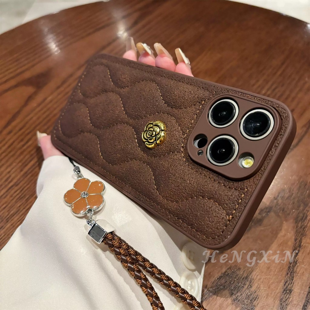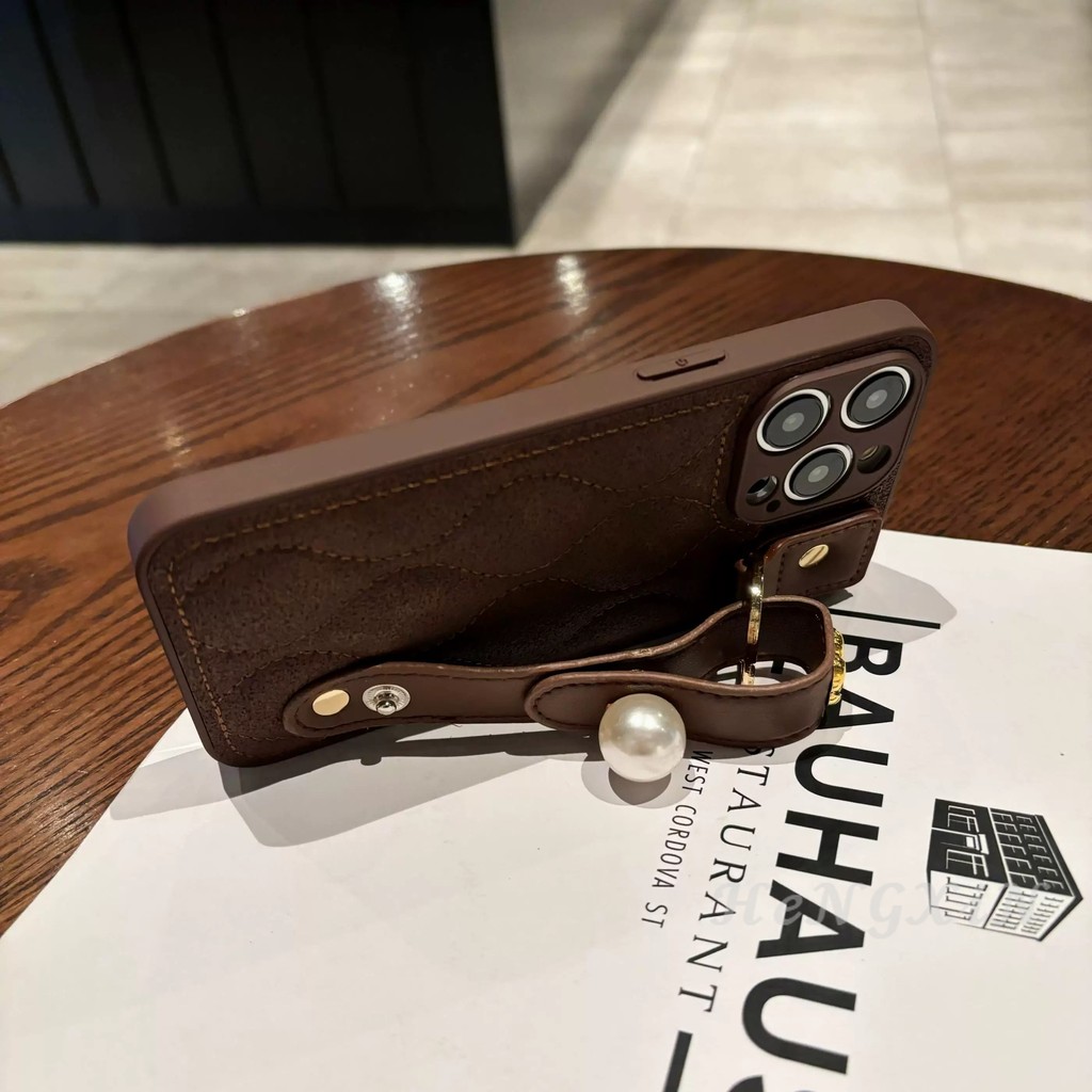 Autumn and winter high-end coffee colored diamond mesh wristband, suitable for Apple iPhone 16 Promax new 13/14 phone case 15 Pro all inclusive 17 Promax anti drop 11/12 Promax leather